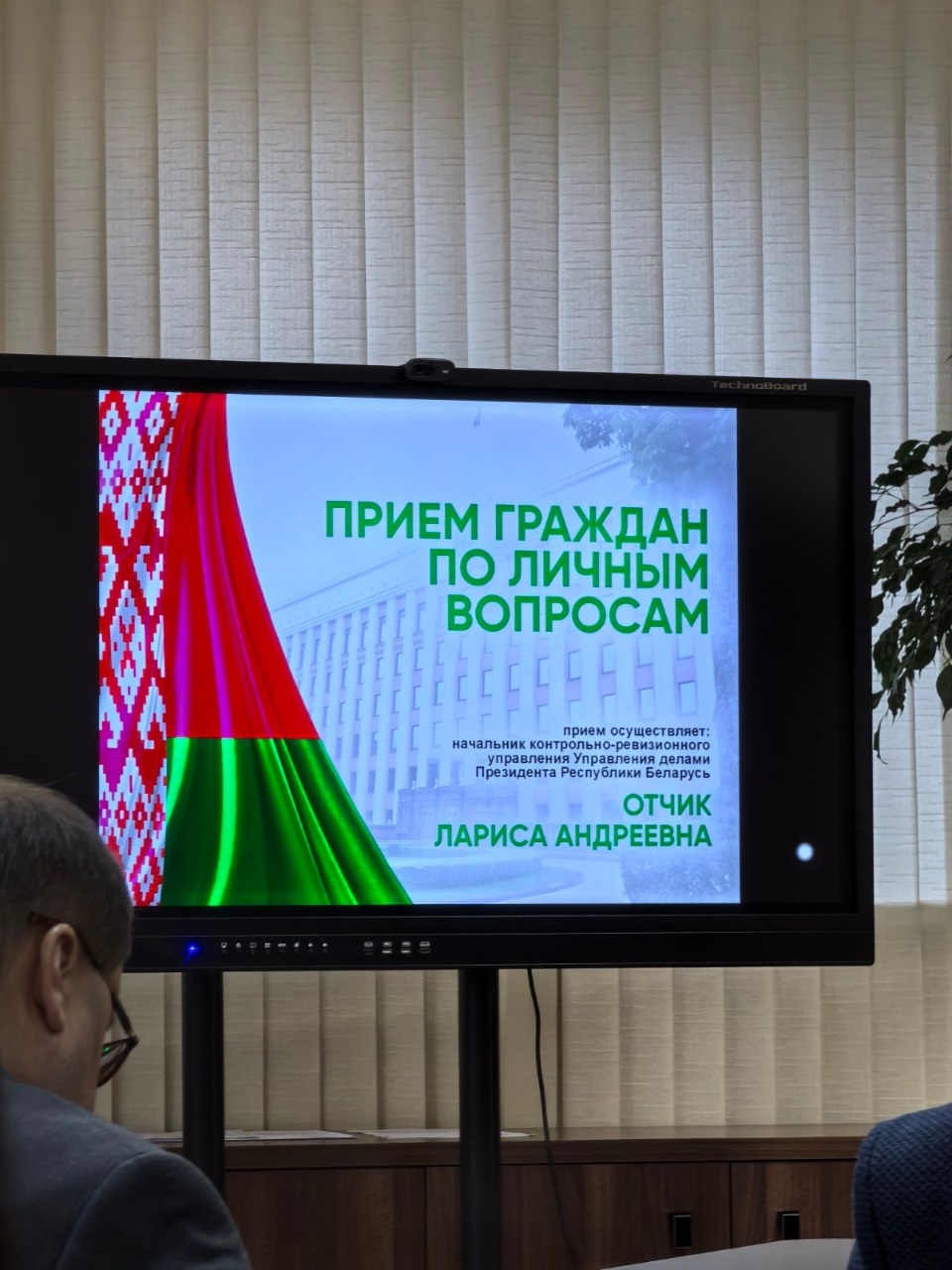 31 октября 2025 г. на базе Государственного предприятия «Беларусьторг» состоялся выездной приём граждан. Прием вела Отчик Лариса Андреевна, начальник контрольно-ревизионного управления Управления делами Президента Республики Беларусь.